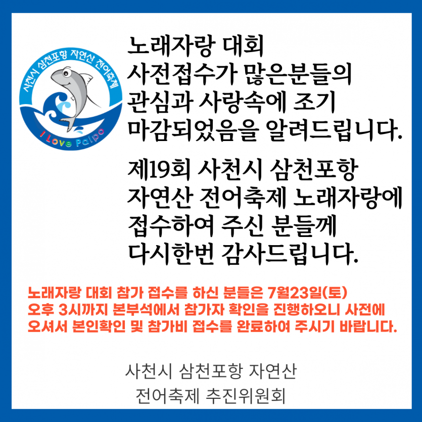 제19회 사천시 삼천포항 자연산 전어축제 노래자랑 대회 접수 마감
