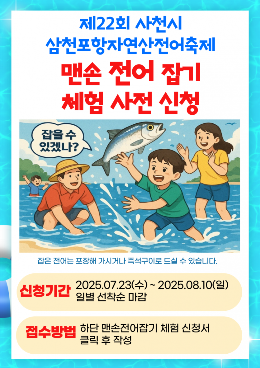 (신청 마감) 제22회 사천시 삼천포항 자연산 전어축제 맨손전어잡기 체험 사전신청